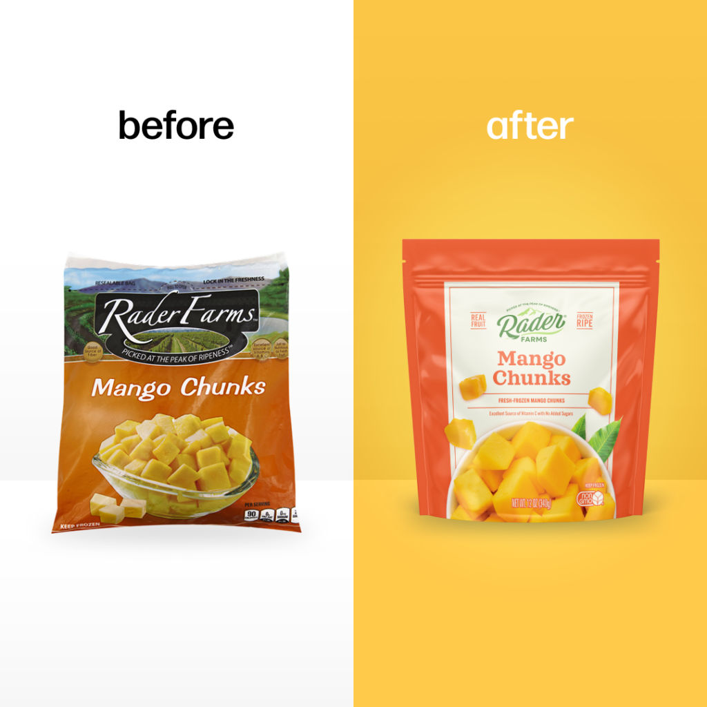 There’s a version of Rader Farms that most shoppers never really saw. Not because the product wasn’t there, but because the packaging wasn’t doing its job. Dark backgrounds, and heavy graphics. A look that blended into the frozen aisle rather than standing out from it. For a family farm with decades of real heritage and genuinely premium fruit, this was a problem worth solving.