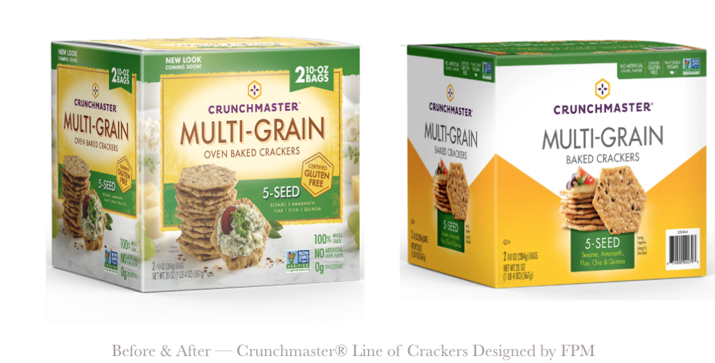 The redesigned Crunchmaster® cracker packaging brings a fresh, modern look to the leading oven-baked cracker brand found in major retailers and Costco. The new design embraces a clean, uncluttered aesthetic that lets the natural texture and integrity of the crackers shine, moving away from overly garnished visuals. A bold, billboard-style presentation is created through the use of the signature V-shaped icon on the primary display panel (PDP), making the pack instantly recognizable and easy to spot on crowded shelves. This elevated design not only reinforces Crunchmaster’s premium positioning but also ensures strong shelf impact and brand recall for loyal and new customers alike.