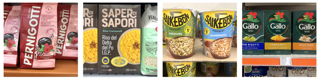 Also notably, the logo size proportions are consistently larger than the rest of the information on a lot of packages. These are well established brands, like Pernigotti™, a chocolate brand founded in 1860, or Gallo®, a rice manufacturer in existence since 1856. Presumably consumers are first drawn by a well-trusted brand visual and second by the type of product they are looking for.